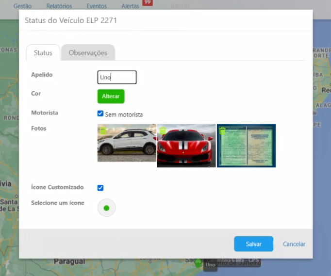 - COR: Define a cor do ícone do veículo no grid e no mapa;